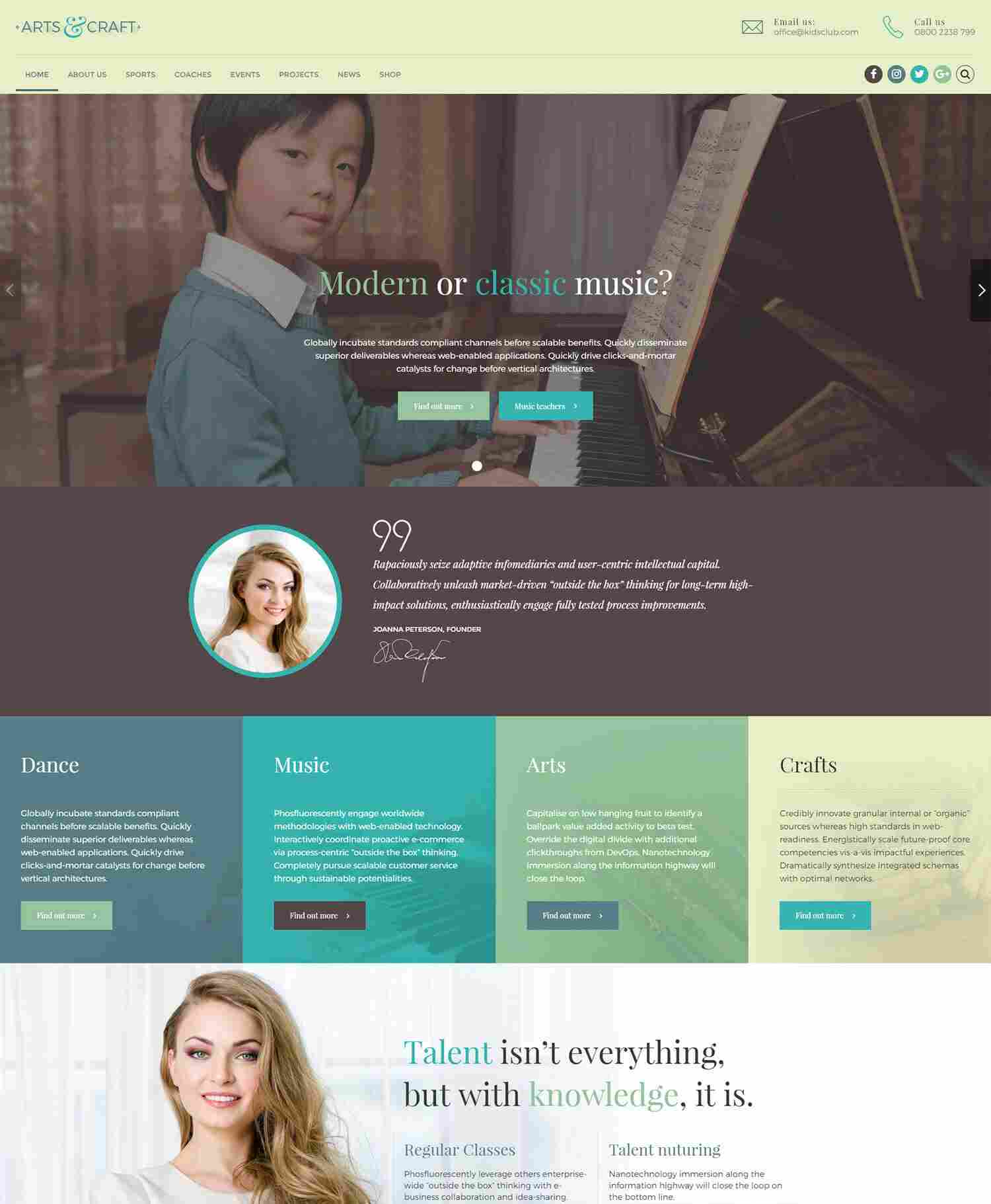Full of options and flexible templates, Kids Club gives you a choice of carefully crafted sample pages and homepages for your website.